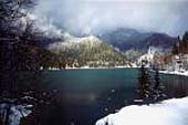 Далее дорога из ущелья Геги переходит в узкое Юпшарское ущелье. Ущелье все сужается и сужается, пока не превращается в узкий каньон – Юпшарские ворота. Это главная достопримечательность на дороге к Рице, на ее 30 километре. Летом здесь толпы туристов, много торговых точек, а зимой никого нет.