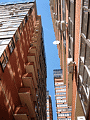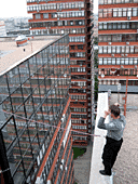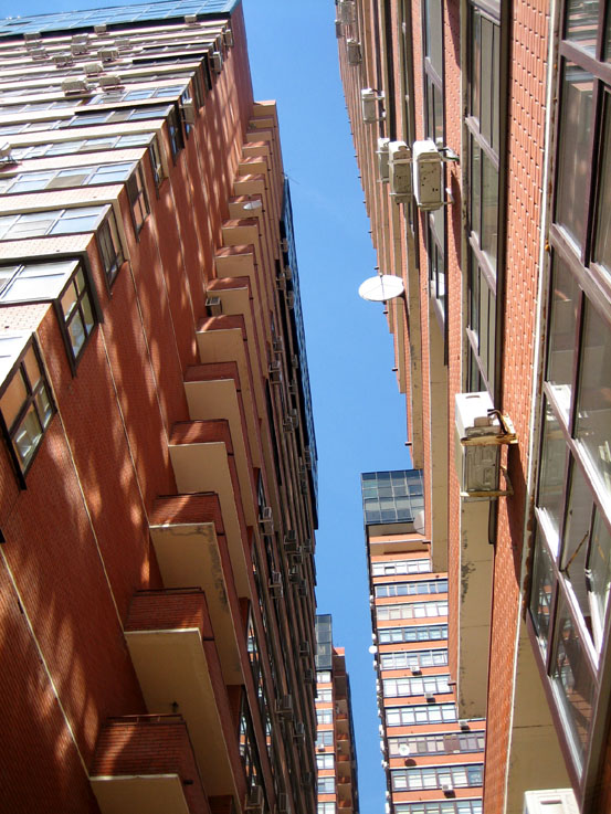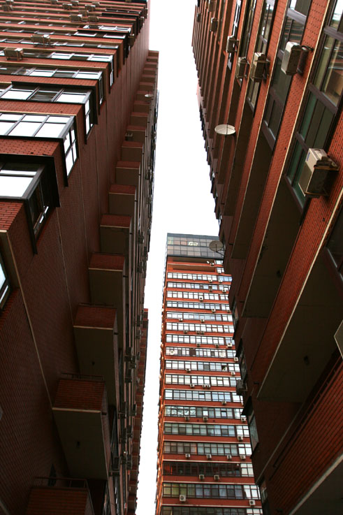 В семь вечера, как и было условлено, встретился с Татьяной на Соколе и мы вместе пошли искать «4 стеклянных здания», на которых будет происходить съемка. Искать пришлось не долго. Сразу за выходом из метро, высились 4 новеньких кирпично-стеклянных здания, огороженных от остального мира высоким железным забором – эдакое государство в государстве, попасть в которое можно только пообщавшись со стражей. Наш пароль был прост: