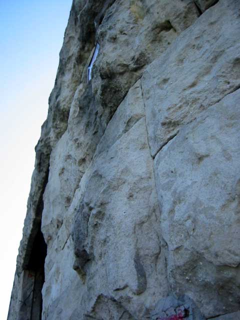 камня, вполне пригодного для лазания. Высота стены около четырех метров,