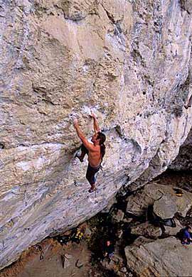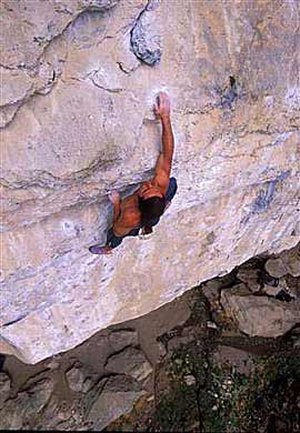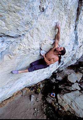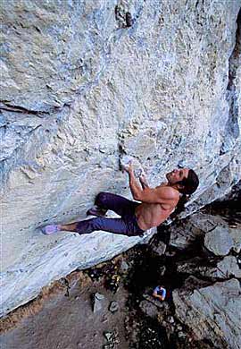 20 апреля. Уже в 8 утра я здесь. Я совершенно один и я хотел бы быть один. Никто не должен побеспокоить меня, и я не хочу никого беспокоить своим лазанием. Я размялся, полазал боулдеринги и я знаю, что моя сила сейчас столь же велика, насколько идеальны условия вокруг. В 9 часов я чувствую, что готов. Уже собираюсь начать попытку, но тут появляется турист. Мы побеседовали немного, я жду. Через 5 минут я решил начать, хотя я и не один. Дабы занять своего зрителя, даю ему свою видеокамеру, уже приготовленную к съемке. Не зная, что ему предстоит снимать, он приготовился. Немного подождав, я полез.