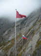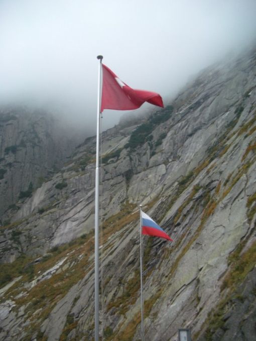 на краю ущелья монумент и два флага - швейцарский и российский (!). Слегка
