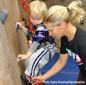...Вслед за великим Жибе Трибу, другая человек-легенда, 45-ти летняя американка Робин Эрбесфилд (Robyn Erbesfield-Raboutou), недавно прошла маршрут категории сложности 8b+!!! Маршрут Bad Attitude, был пробит ее мужем, Дидье Работу (Didier Raboutou), недалеко от ее летнего домика во Франции в районе St. Antonin Noble Val. Первая часть маршрута, имеет категорию сложности 8a+, а затем следуют 14 очень сложных болдеринговых перехвата. ...Ставшая 4-х кратной чемпионкой мира, на заре развития спортивного скалолазания, в начале 90-х годов, Робин Эрбисфилд, была одной из первых женщин, прошедших на скалах маршруты категории 8b/+. В настоящее время, Робин занимается подготовкой молодых спортсменов в детской секции скалолазания ABC for Kids при клубе Boulder Rock Club (Колорадо) и тренирует также собственных детей. Недавно, ее 10-ти летний сын, Шон (Shawn), прошел свой первый маршрут категории сложности 7с+ (!!!), а 7-ми летняя дочь Брук (Brooke), пролезла свою первую 7a+! Про систему тренировок Робин Эрбесфилд, можно прочитать здесь. источник>>. (MedunInfo, 28.08.2008)