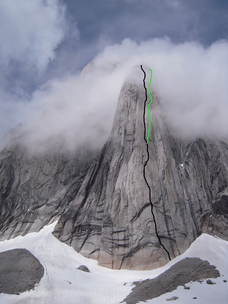 Известные бельгийские восходители, Сеан Вилануэва О'Дрискол (Sean Villanueva O'Driscoll) и Нико Фаврессе (Nico (Nikolas) Favresse), после недавнего летнего прохождения Нико тред-маршрута Cobra Crack, 8с (район Squamish, Канада), переместились в район Purcell Mountains, расположенный также в Канаде (область Британская Колумбия), на гранитную гору Bugaboos. «Сначала мы решили пройти свободным лазанием 600-метровый 11-ти веревочный (питчевый) маршрут Doubting The Millennium, пройденный до этого ранее лишь с использованием ИТО. После 4-х веревок, мы дошли до главного контрфорса, но после еще пол-питча нас вдруг соблазнил полый гранитный сталактит, за которым следовал сильнонависающий участок стены, уводящий направо. И мы рискнули! Пройдя по диагонали вправо 4-5 веревок, мы вышли на известный маршрут Southwest Pillar, который идет на вершину! Мы назвали наш «коннекшн» Millennium Escape. Он состоит из 11 веревок и имеет участки лазания до 7b. Уже потом, мы–таки прошли свободным лазанием оригинальный Doubting The Millennium, ключевая веревка которого проходит по тонкой щели, имеет категорию сложности около 7b+ и всего 4 (!!!) точки страховки. Прохождение маршрута нам значительно усложнила неожиданно разыгравшаяся ужасная гроза», вспоминает Сеан Вилануэва. источник>>. (MedunInfo, 17.09.2008)