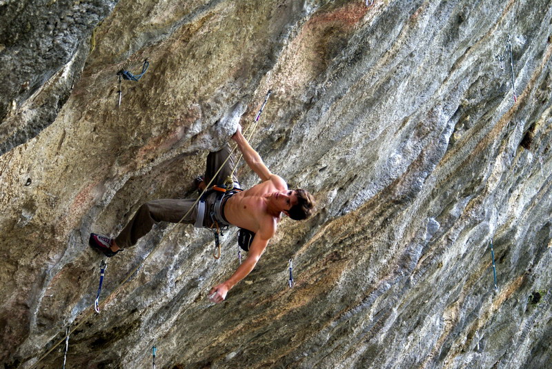 2. Sansara, новый 6-питчевый маршрут, расположенный недалеко от Feuertaufe, был пробит Александром весной, и пройден 25го июля. На маршруте расположено три (!!!) потолочных участка, самый сложный из которых имеет категорию 8b+!