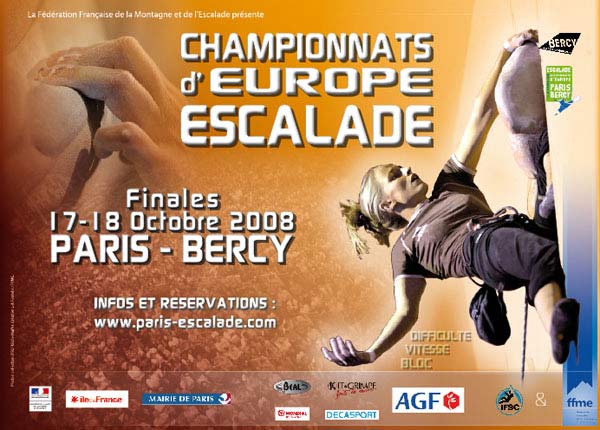 15-18 октября в столице Франции, Париже (район Bercy), проходит самое долгожданное и значительное соревновательное событие этого года, Чемпионат Европы 2008! В программе соревнований - трудность, болдеринг и скорость. Наших спортсменов представлено много: состав сборной Украины, состав сборной России. Положение и регламент соревнований, можно посмотреть здесь (на английском языке). Первый день, результаты квалификации боулдеринга не могут не радовать, особенно у девушек (Оля Бибик - первая в квалификации)! Второй день также принес очень обнадеживающие результаты, в квалификации трудности, Яна Черешнева и Женя Маламид сделали ТОП! У мужчин, в первой десятке - Валера Крюков (Украина). Продолжаем болеть за наших! Результаты соревнований можно в режиме он-лайн посмотреть здесь. Большое количество красивых фотографий с квалификации болдеринга можно посмотреть здесь: девушки, мужчины. (MedunInfo, 17.10.2008)