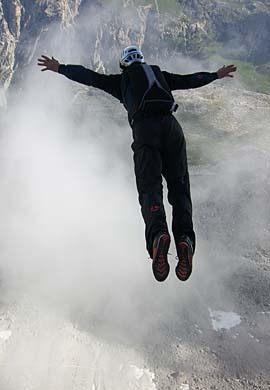 В августе 2008 года, немец Томас Хубер за одни сутки совершил восхождение на три пика горы Tre Cime di Lavaredo (Италия) и прыгнул с парашютом с 2-х из них (Cima Ovest и Cima Grande)! Восхождение на первый из пиков (Cima Ovest), Томас совершал ночью, лидируя в связке. Задача осложнилась тем, что в районе 10-го питча у него сели батарейки в фонарике и поломалась ключевая зацепка. Однако, взошедшее вскоре солнце, подарило ему 5 секунд свободного полета! Восхождение на Cima Grande, Томас совершил со своим братом Александром по маршруту Das Phantom der Zinne 7с+/8а. Прыжок с вершины был длиннее, свободный полет занял 8 секунд!… Видео прыжка Томаса Хубера с одной из вершин, смотрите здесь (2 Mb). источник>>. (MedunInfo, 16.10.2008)