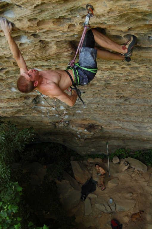 Кино из Ред (Red River Gorge, США, ред.)! Брэд Вивер лезет 50 words for pump, 8c+ в секторе Bob Marley. Смотреть со звуком. Снимал Спенсер из Victory Production, который снял также падонкавское кино Red River Ruckus. Смотреть (размер 12 Mb). Трасса - одна из двух наиболее сложных в Ред. Вторая - Lucifer. Есть еще одна девятка (или десятка), пробитая недавно Шармой, но он ее сам не может вылезти, поэтому категория неизвестна. Enjoy. (Kostik, 29.11.2008)