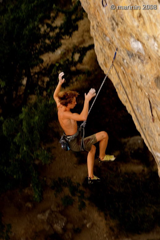 Мы сейчас находимся в Испании в районе Сиурана. Начали тренироваться. Миша Черников и Саша Шоприн залезли 8a "Anabolika" (Евгения Маламид, 30.01.2009)