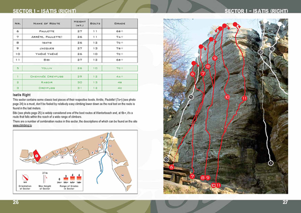 Через 10 лет после выхода старого гайд-бука по красивейшему и популярнейшему в Северо-Западной Европе району Berdorf (другое название Wanterbaach crag, ред.), расположенному к северо-востоку от одноименной столицы Великого Герцогства Люксембург, свет увидел новый гайд-бук, составленный Маркусом Хайсомом (Marcus Haysom). Гайд-бук на английском языке, занимает 120 страниц с цветными фотографиями секторов района, на которых цветом отмечены маршруты (на фото, ред.), с указанием их категорий сложности, высоты, количества шлямбуров и другой полезной информации. Цена гайд-бука 15 евро. источник>>. (MedunInfo, 30.05.2009)