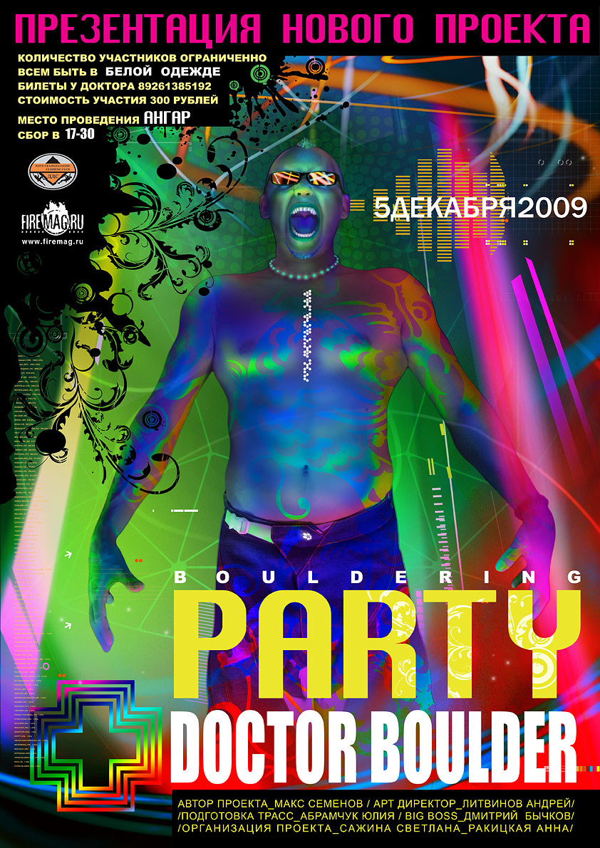 6 декабря 2009 года, сбор в 17:30. Место проведения - Ангар. Количество участников ограничено! Полная информация чуть позже! Для пришедших полазить будет боооольшой красивый сюрприз.... а тем, кто собирается не лазить, а смотреть, надо готовить фото и видео камеры для съёмок в сложных условиях :))) Подробности у автора проекта Макса Семёнова 8-926-138-5192