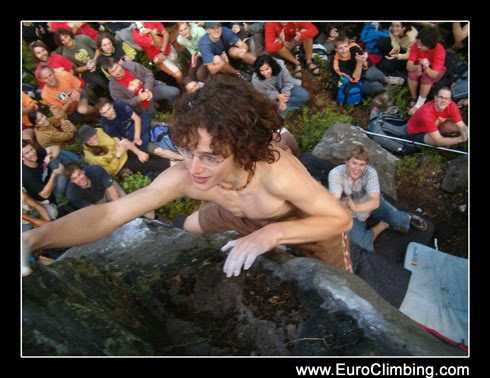 Как обычно, после напряженной работы над длинными маршрутами высших категорий сложности, которые расположены в разных, близких и не очень районах Европы, пожалуй, самый известный и результативный скалолаз в мире, молодой чех, Адам Ондра, вернулся к себе на родину, чтобы в качестве эмоциональной разрядки переключиться на лазание болдерингов. И, надо сказать, это у него с успехом получается! Так всего за два дня работы, ему во время ночного (!!!) опробывания, удалось пройти проблему Barevny svit, категории сложности 8B+, расположенную в районе Petrohrad (Чехия). Это прохождение стало 4-м прохождением Адамом болдеринговых проблем такой сложности и вывело его на 4-ю позицию международного болдерингового рейтинга на естественном рельефе сайта 8a.nu! источник>>. (MedunInfo, 15.12.2009)