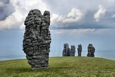 Столбы выветривания (мансийские болваны) — уникальный геологический памятник в Троицко-Печорском районе Республики Коми России на горе Мань-Пупу-нёр (что на языке манси означает «Малая гора идолов»), в междуречье рр. Ичотляга и Печоры. Останцев 7, высота от 30 до 42 м. С ним связаны многочисленные легенды, прежде Столбы Выветривания являлись объектами культа манси... читать далее>>. (MedunInfo, 07.10.2010)