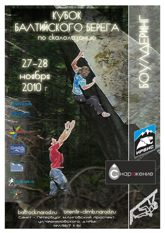 27-28 ноября 2010 на скалодроме ГОУ "Балтийский берег", по адресу г. Санкт-Петербург ул.Черняховского 49-а, ст.м. Лиговский проспект состоятся традиционные соревнования по скалолазанию в дисциплине боулдеринг Кубок "Балтийского берега" 2010 года