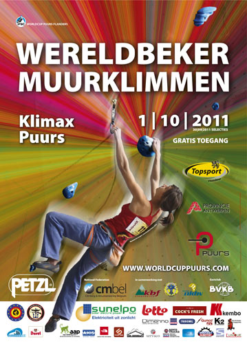 30 сентября - 1 октября, в бельгийском городе Пюрс (Puurs, пригород Антверпена), будет проходить очередной этап Кубка Мира на трудность. Этот Этап на трудность, который проводится в Пюрсе ежегодно, уже пятый по счету из десяти, заявленных в календаре Международной Федарации Спортивного Скалолазания (IFSC). В этом году от стран СНГ среди 85 заявленных участников, будет выступать всего три человека, Яна Черешнева (Россия) и украинцы, Юрий Дзюбяк и Павел Векла. Полностью стартовый протокол и положение соревнований (на английском языке), представлены на сайте IFSС, где будут также представлены текстовые результаты в режиме он-лайн. Онлайн видео-трансляция пятого этапа Кубка Мира на трудность, ожидается здесь и здесь. Более подробную информацию о соревнованиях и месте их проведения, можно получить на официальном сайте. Болеем за наших!!! (MedunInfo, 28.09.11)