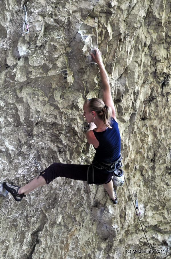 Одна из самых сильных российских спортсменок в лазании на трудность, Евгения Маламид (Воронеж), прошла на онсайт маршрут Marroncita категории сложности 8b, расположенный в районе Олиана (Oliana, Испания, Каталония)! Это уже вторая 8b на онсайт у Жени (первой был маршрут Espirit Rebeld, расположенный в секторе Las Ventanas del Mascun района Rodellar (Испания, Арагон), который Женя прошла на онсайт в июле 2009 года, ред.). Напомним, что кроме Жени, ни одна девушка в СНГ еще не проходила на скалах маршруты сложности 8b на онсайт. Кроме того, Женя стала первой девушкой в СНГ, которая прошла официально подтвержденный маршрут 8с, Strelovod, расположенный в районе Misja Pec (Словения, отчет об этом прохождении можно прочитать на нашем сайте здесь). Отличилась в Олиане не только Женя, но и Миша Черников (Воронеж), который прошел маршрут El Gran Blau сложности 8b+/c! От всей души поздравляем Женю и Мишу с замечательными результатами и желаем дальнейших успехов! На фото ((c) MedunInfo), Женя Маламид во время прохождения маршрута Strelovod, 8c, май 2011 года. источник>>. (MedunInfo, 27.02.12)