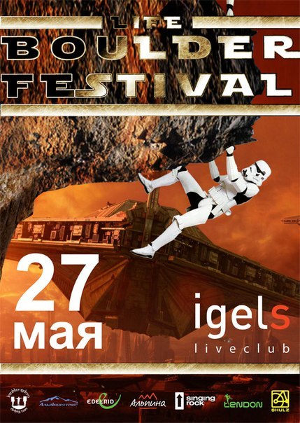 27 Мая в Санкт-Петербурге пройдёт Life Boulder Fest. Соревнования по скалолазанию для всех категорий! Более 30 трасс! Группа до года, группа до 3 лет и группа в абсолютном зачёте. Все победители будут награждены ценными призами и посещениями клуба "Igels"