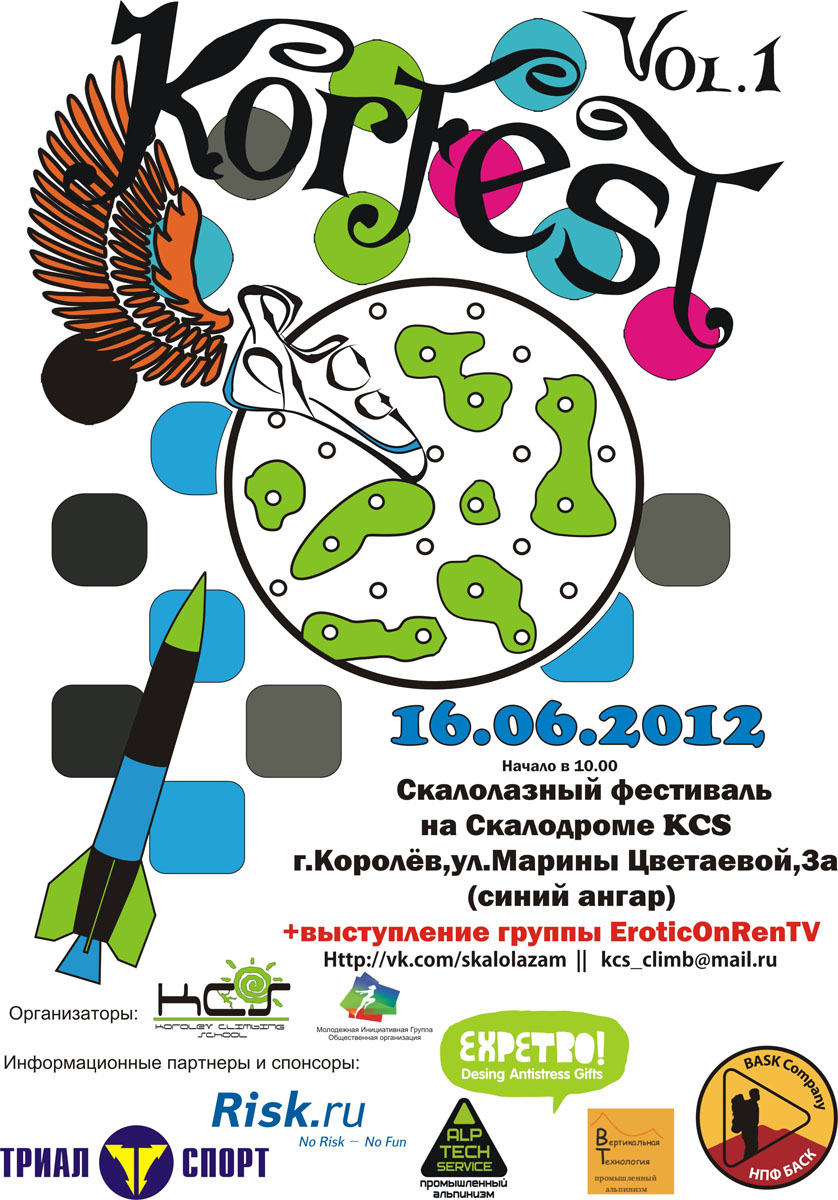 Фестиваль проводился 2 июня 2012 года, в городе Москва, на скалодроме 'Big Wall”, по адресу: город Москва, Бумажный проезд, дом 19, строение 1 (станция метро «Савеловская»). Видео>> (Vet, 08.06.12)