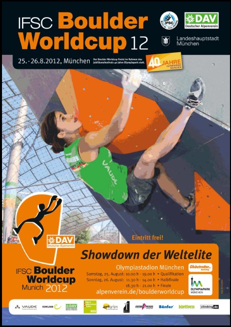 25-26 августа 2012 года в Мюнхене прошел финальный этап Кубка Мира 2012 по болдерингу. Результаты: