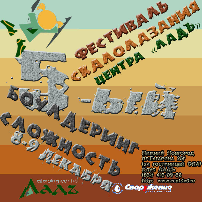 8-9 декабря состоится фестиваль по скалолазанию в двух дисциплинах: боулдеринг и сложность. Боулдеринг в субботу, а в воскресение лазание по потолкам. В постановке боулдеринга активное участие примет Федоров Игорь из Иваново