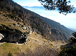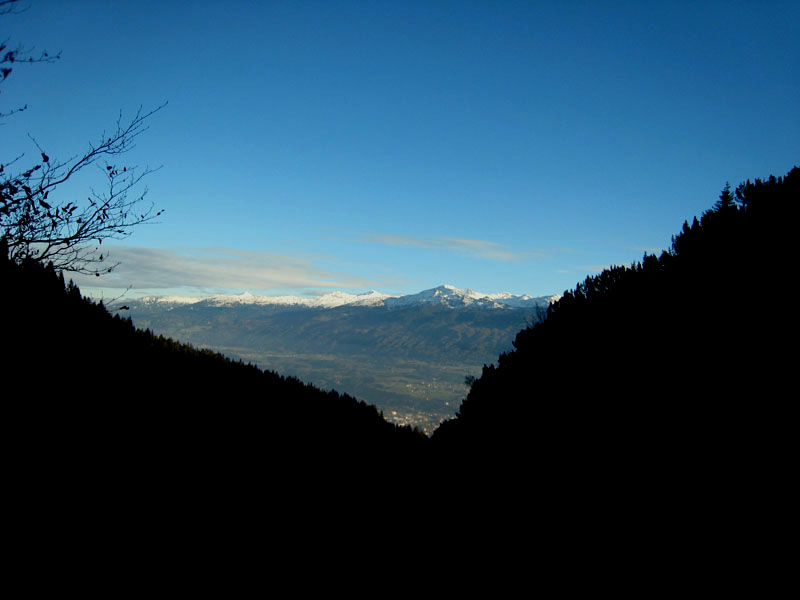 Наутро закупились кое-какой едой и газом и поехали в Dryland – место с микстовыми маршрутами над Инсбруком. До Инсбрука добрались без приключений, дальше долго искали гестхаус, который со времени выпуска путеводителя изменил название (для пытливого читателя, желающего повторить наше путешествие и обладающего GPS сообщаю координаты бесплатного паркинга у начала тропы, ведущей к Dryland: E 11° 22’ 46’’; N 47° 16’ 55’’), перепаковались и пошли искать Dryland. Сначала долго поднимались по лесной дороге и всё было однозначно, но потом вышли к месту, где появились альтернативы - дорога разделялась на несколько и каждая шла в своё ущелье. Выбрали одну – наиболее натоптанную по ней и пошли. В какой-то момент в душе начали крепнуть сомнения – что-то скал похожих на фотографии в путеводители не видно. Решили перейти на другую сторону ущелья в результате попали на мерзкую сыпуху, пропитанную водой по которой и дошли до более пологого участка склона – прямо напротив какой-то хижины, самое смешное что на хижине была табличка с номером дома и названием улицы.