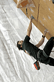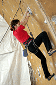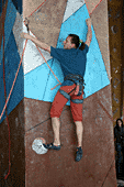 Про себя: «Да, 8а на соревнованиях – это круто, хотя проект 6с мне больше по душе. Мечтательно – Слоппера… Чего? Слоппера-Слоппера!!!» Ладно, идем дальше - смотреть остальные трассы. Прихожу в дикий восторг от первой трассы. Широкие хваты за края колоны, блок на втором движении, мизера… кто-то подсказывает: «мизера только под ноги, Олег вчера специально зацепки подбирал, чтобы руками не взялись»… мизера под ноги, дальше рельеф (интересно он держит или верх пассивный?). Одним словом: ХОЧУ!