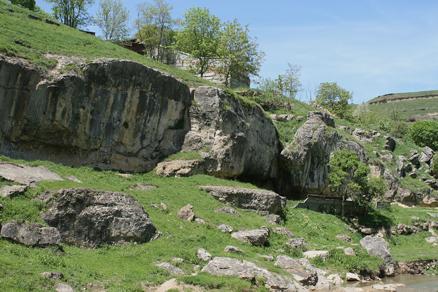Уже в черте города на берегу реки можно увидеть выходы известняка. Эти стеночки хоть и невысокие,