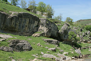 под основной скалой вырос лесок, где летом нежарко, а огромный карниз закрывает от дождя.