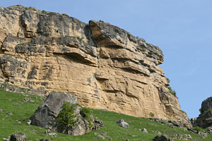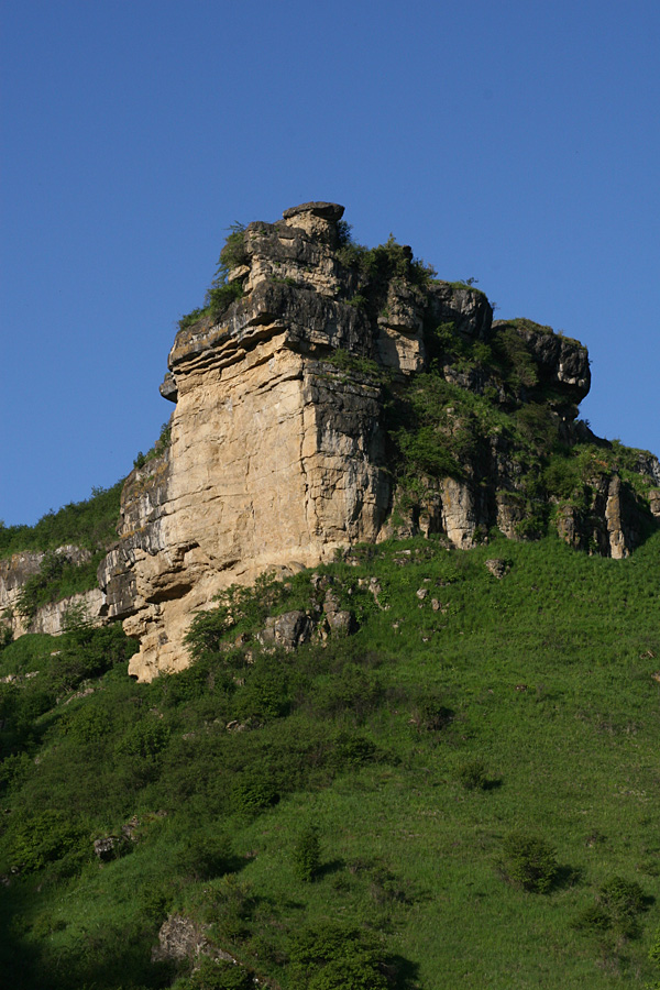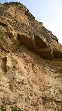 Карниз этот образовался, когда от основного массива отвалился 50-метровый кусок. В тени этого обломка,