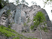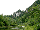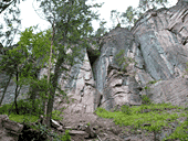 В субботу погода кардинально поменяла название на «мерзость, сырость, колотун-бабай». Но мы честно встали с утра и пошли осматривать скальные стенки проглядывающие из сосново-елово-пихтовой растительности.