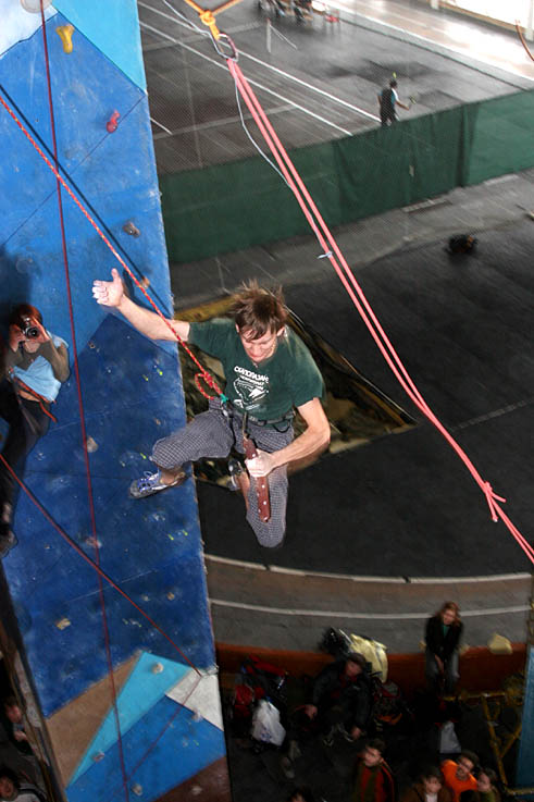 Еще больший разброс в результаты финалов внес второй, не связанный с первым, этап – лазание с закрытыми глазами. В очках для плавания с испорченными стеклами слепые котята обоего пола шарили руками по стенкам в поисках зацепок. Зрители, получившие официальное право подсказывать, азартно орали верные и неверные подсказки лезущим. Пожалуй, трассы были излишне легкими – до верху долезло большинство, но расклад по времени расставил всех по местам.