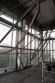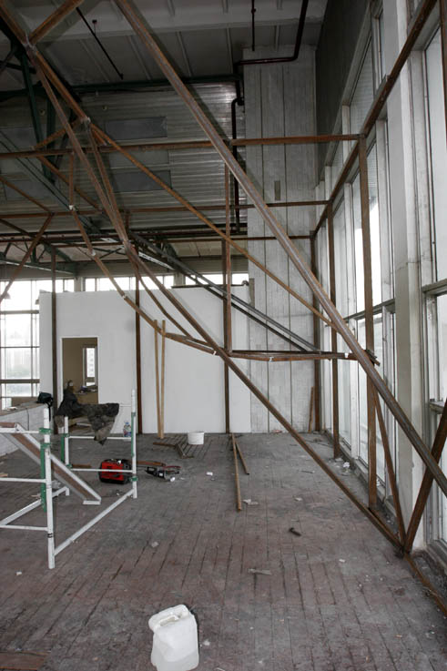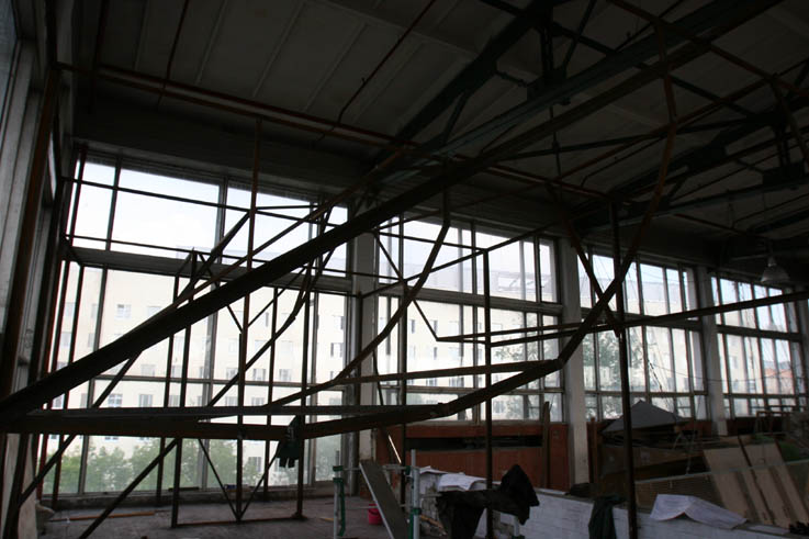 В спортивном комплексе Бауманского университета полным ходом идут работы по строительству боулдерингового зала. На данный момент близится к завершению монтаж каркаса БЗ.