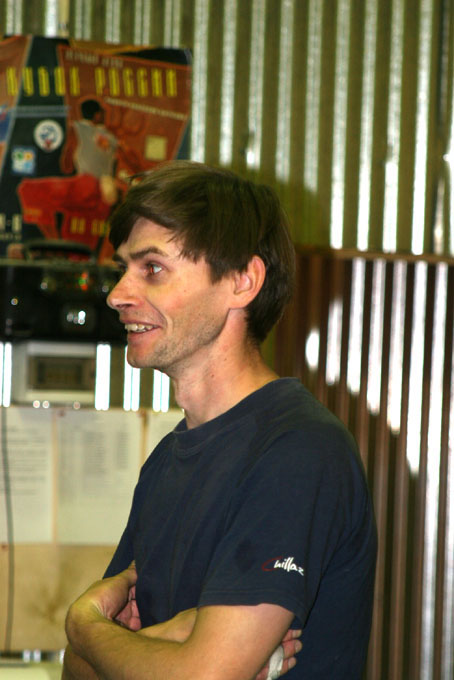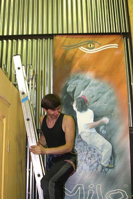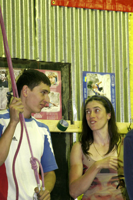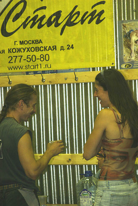 Б-7 мы режили провести на Дубровке по предложению Андрея Казакова. Идея зрела-зрела (еще с Б-5) и, наконец, созрела. Дубровка со всех точек зрения показалась нам идеальным скалодромом для боулдерингов с прыжками, а Густав, с которым нас своевременно познакомил Медун:), идеальным подготовщиком. Лишь один пробел невозможно было восполнить – отсутствовала стенка под углом 20 градусов, поэтому о Dyno-соревнованиях пришлось на время забыть. Вот так родились совместные соревнования «Дубровка – Баурок-7». Ну это… здесь полагается сказать много умных слов о спонсорах:) Постараюсь вкратце – Старт-1 предоставил замечательные призы от ROCA, VauDe, Filon и Milo (скопировала с их сайта), а Баурок, как обычно, рассчитался с призерами зеленой натурой:)