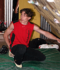 Нужно джампинг провести, и чтобы прыжки на щипки были, на подхваты, на пассивы. Пассивов маловато было, побольше бы! А вообще я по потолкам на руках ходить люблю :). (после окончания финалов Рустам этим и занимался на большом «пузе»)