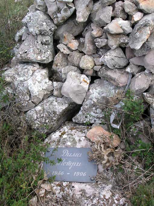 Пока я отвязываюсь, переобуваюсь, сортирую железо, Степа начинает таскать камни к туру неподалеку. Оказывается, это могила. Степин Друг. Я тоже кладу пару камней. Спускаемся вниз по дороге мимо белой церкви, едем домой, довольные, как два кота. Восхождение заняло шесть часов.