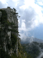 Над нами - арка, щедро усыпанная зацепами. Лазание напоминает ДДС - куча зацеп, на выбор. Вылезаю арку, над ней - вход в пещеру. Красиво. Маршрут проходит по стенке. Еще несколько движений, вдруг оказывается, что я держусь руками за край Яйлы. Вдалеке виднеется Степа, станции нет, Степа просто отходил вглубь яйлы, по мере выбирания веревки.