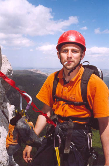 Затем он орет вниз со всей силы - "самостраховка!!!".