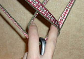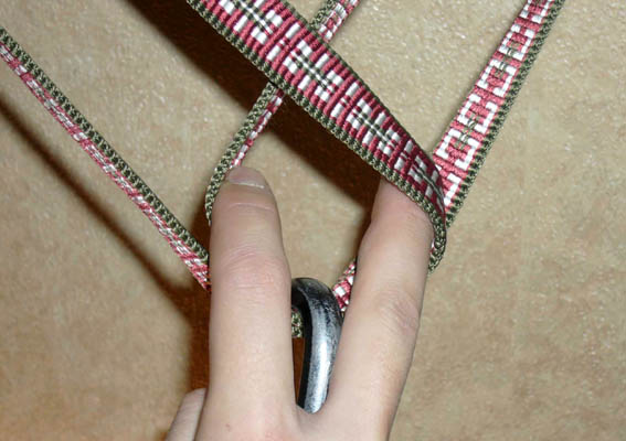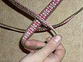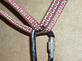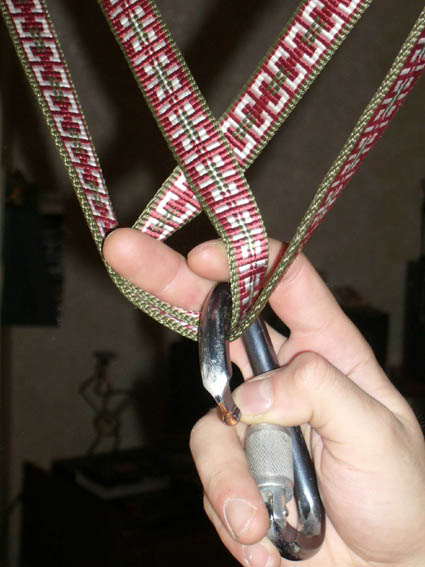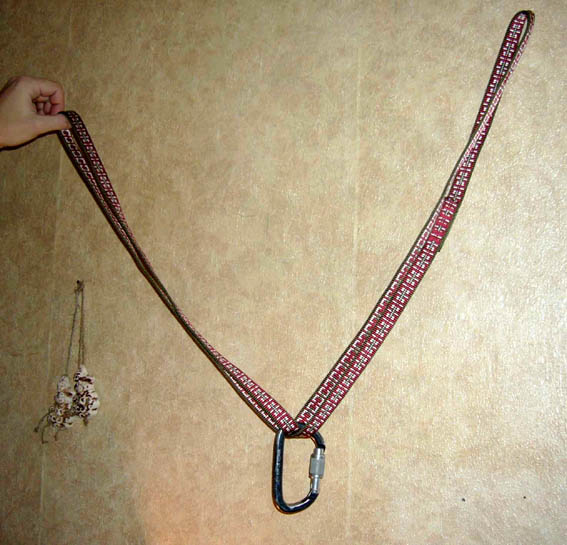 После он делает собственно станцию - прощелкивает карабин во второй шлямбур, в оба карабина вставляет петлю. Потом на петлю вешает карабин. Тут есть один момент - на петле надо сделать петельку, чтобы в случае разрыва шлямбурного уха или оттяжки вся конструкция не улетела вниз.