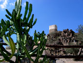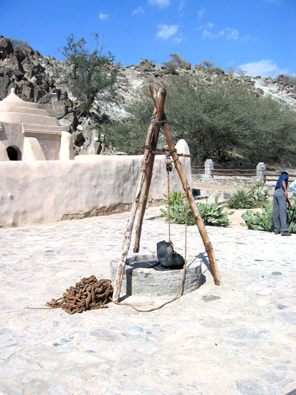 Перед мечетью табличка – типа памятник и все такое. На минаретах сэкономили – просто вынесли на гору две башенки. Вид с башенок весьма неплох, плюс из бойниц простреливается вся округа – с умом строили явно. Во дворе колодец с «небольшим» таким моточком веревки, мда, тяжело тут пресная вода дается.