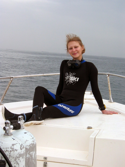 Через некоторое время Олеся зовет на всплытие. На мои возражения что воздуха еще дофига, показывает, что холодно пц как. Мне тоже мягко говоря было не жарко и мы всплыли.