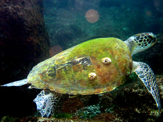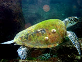 Уходим глубже, есть контакт, замечаем по настоящему крупную черепаху.