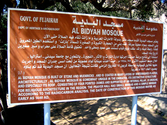 Въехали в Фуджейру – эмират, цель нашего путешествия. Едем уже вдоль побережья Индийского океана. Кругом таблички – рыбалка запрещена, типа заповедник. Проскакиваем мимо поворота на дайв-центр Скуба-2000, в котором у нас заказаны комнаты, с целью посмотреть самую старую в Эмиратах мечеть.