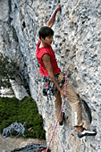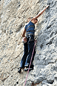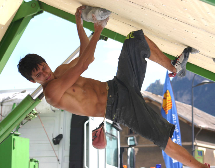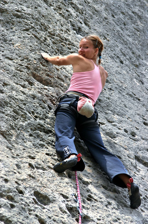 Уже прошло больше половины выезда, осталось мало трасс для разминки и on-sight. Мы нашли трассу на разминку, чуть посложнее и Рустам полез 8а. Эту трассу Рустам недолго мучил, первые две оттяжки были мокрыми, но это ему не помешало хорошо пройти ключ и два раза в конце прийти не той рукой на зацеп, трасса пройдена. Не пробуя 8а, я полезла 7b с провешиванием, но в конце не сделала последнего движения - прыжок на хапалку, снизу кажется, что человек прыгает на потолок, Рустам попробовал трассу, увидел, пролез. Рустам, отдохнув пару минут, полез 8а+. В этот день был очень сильный ветер, так что у него была задача устоять перед порывами ветра и сделать вторую сложную трассу за день. После такой хорошей тренировки обязательно должен быть день отдыха, но его не хватило, чтобы восстановиться, так что 7а для Рустама оказалась очень сложной. В последние дни перед отъездом трассы не поддавались, у меня простые трассы, а у Рустама были две попытки на 8а, на которых он улетел в конце. На оной из них была отломана маленькая зацепа в конце, но Рустам удержался и упал на следующем движении, подскользнулся. На этом мы закончили тренировки на скалах в этом году и отправились в Австрию на Первенство мира в город Имст.