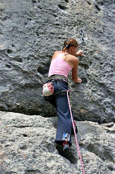 В Сиюз мы приехали первого августа, в этот же день пошли лазить, размяться на паре трасс легкой категории. В первый день было непривычно: скалы, все трассы по дырочкам и большие расстояния между оттяжками. Первые дни мы лазили трассы не выше 7b.