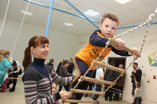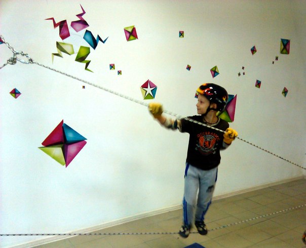 Решение пришло неожиданно. Случайно подвернулось помещение, разделённое на 2 зала дверью. В одном мы спроектировали небольшой скалодром а во втором - верёвочный городок.