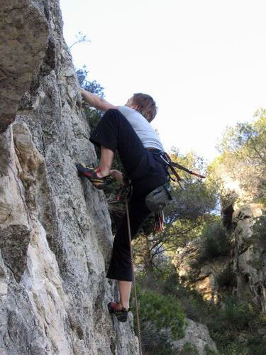 Перед тем как Иван уехал, мы все же сходили один маршрут в 3 веревки, что мы зря кучу альпинистского барахла с собой тащили? Маршрут был несложный и мы остались собой довольны:-) Для любителей trad маршрутов есть что полазить и в Сиуране, хотя выбор не велик. От 5 до 7б (кажется) можно найти треды длиной от одной до 3 веревок.