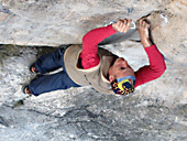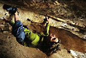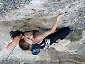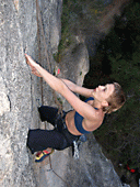Еще в первый день у меня закралось смутное сомнение о каком-то подвохе. Ну не может быть все так хорошо: куча маршрутов, хорошая погода, лезется хорошо; ну где же подвох? А он в прогалах, т.е. в расстояниях между точками. Все маршруты, за малым исключением, очень длинные - по 25-30 метров, а среднее количество болтов на трассе 8,9. Справедливости ради оговорюсь, что очень опасных мест нет, но тем не менее психологически тяжело. Вот стоишь ногами выше шлямбура, а к очередному еще и подлезть нужно. Короче, 3 метра - не пролет, мы и больше видели:-) Через неделю голова привыкает к таким приколам и уже лезется поспокойнее, но очко-то сжимается!!!