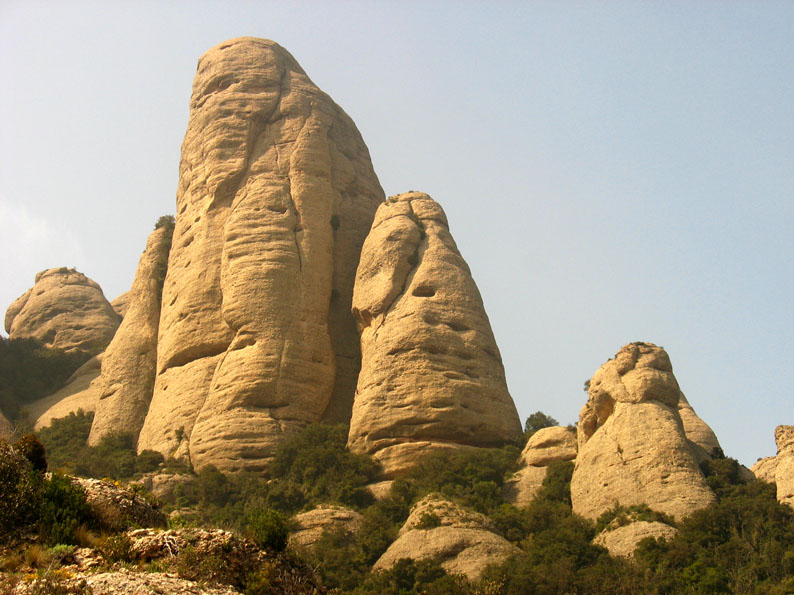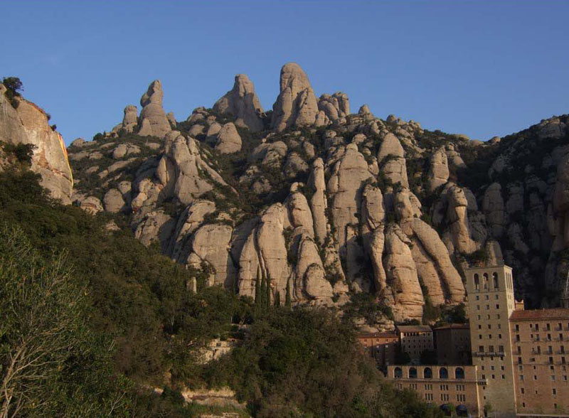 В этом самом Монсерате гайдбуки обещают тысячи маршрутов на любой вкус и даже мультипитчи, за которыми, собственно, мы туда и направлялись. Транспортное средство у нас было отличное – взятая на прокат машина. Дороговато, конечно, но жизнь облегчает здорово. Так что к послеобеденному времени мы были уже на месте. Собственно Монсерат это монастырь в очень живописном месте. Вокруг этого монастыря понастроены музеи, магазины и кафешки, так что святостью там не пахнет, а пахнет туристами и деньгами. К вечеру, наконец-то, нашли мы кемпинг, ибо на улице спать строго воспрещается, да, собственно говоря, и негде, хотя допрошенные скалолазы поговаривали о какой-то хибаре, но кто его знает где? Наутро, вооружившись гайдбуком, изголодавшиеся по скалам, мы выступили в поход. По-другому и не скажешь - до ближайших секторов минут 40 идти.