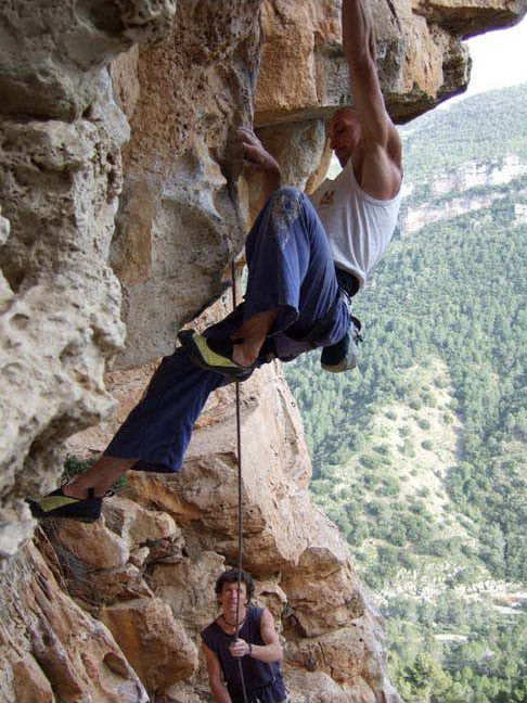 Сиурана это крохотный поселочек в тупике на краю обрыва. В поселке в этом живут человек 20. Чем занимаются - не понятно, но явно с голоду не мрут, а еще и одну русскую машину имеют – ниву, вот. Все приезжающие останавливаются в кемпинге неподалеку. Кемпинг этот принадлежит одному фанатику, который сам скалолаз и безумно влюблен в это место. К слову сказать, если верить книжкам, то он немало сделал для этого района. В кемпинге живут в основном скалолазы, так что атмосфера стоит соответствующая. Вечером в баре за бутылочкой пивка или местного винца можно запросто поболтать с такими же отмороженными, как и ты сам, со всего мира. Несмотря на то, что сезон подходил к концу, т.к. летом лазить слишком жарко, народу было достаточно. И народ сам по себе разношерстный: от новичков до тех, кто пальцы на 8-х ломает. Благо примерно 800 маршрутов позволяют найти себе по вкусу. Опять же здесь одна из немногих 9а+ и еще пара проектов такой же категории. И вообще у меня сложилось впечатление, что сложных маршрутов от 7а больше чем простых.