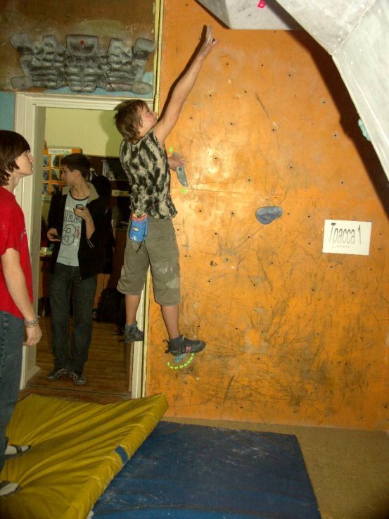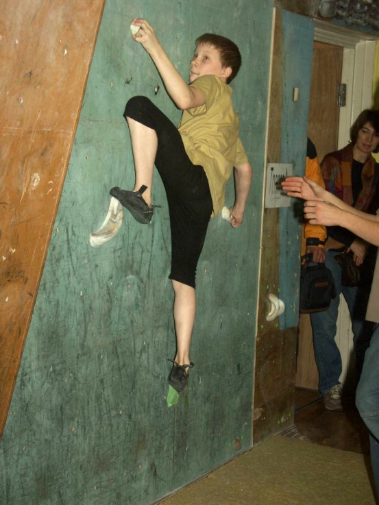 Становится понятным расклад: Тер-Минасян – первый, Фофонов – второй, Ериков – третий. К четвертой трассе подходит явный лидер – Тер-Минасян Арман. И к всеобщему удивлению не проходит ее с первой попытки. Затем, вторая, третья попытки. Наконец, на четвертой попытке, Арман проходит проблемный участок трассы почти в самом конце трассы кончается время. Но это уже ничего не решает – три лишние попытки сделаны, а у Ерикова он выигрывает бонус. Окончательный итог. Стасик – первый, Арман – второй, Леша третий. Соревнования младших девушек прошли почти незаметно. Там все было более или менее ясно. Перед младшими юношами трассы усложнили до предела. Там было два Гоши, Артем Петраков и Гладышев Андрей. Но, эти товарищи не порадовали зрителей своими успехами. Гоша Деркачев прошел 3 трассы, Гоша Кошко – 2, а Артем, занявший 3 место – всего одну. Зато, по мере освобождения трасс, их резво осваивали – подростки Фофонов Стас и Тер-Минасян Арман. Конечно, не с первой попытки, но гораздо успешнее, чем их старшие товарищи.