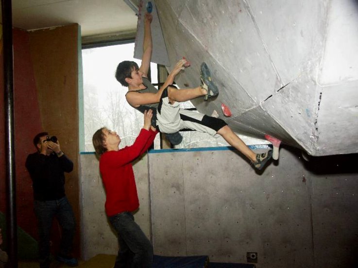 Вдруг, на третьей трассе – Стас срывается. Одной попытки в этой группе достаточно, чтобы отлететь на 3 место. Стас нервничает и срывается на второй попытке. С третьей попытки трасса была пройдена. Всем ясно – это 3 место. Стасик проходит остальные трассы с первой попытки. Леша Ериков легко проходит первые три трассы. И вдруг, застревает на четвертой, хотя трасса была несложной. Вот он новый претендент на 3 место.